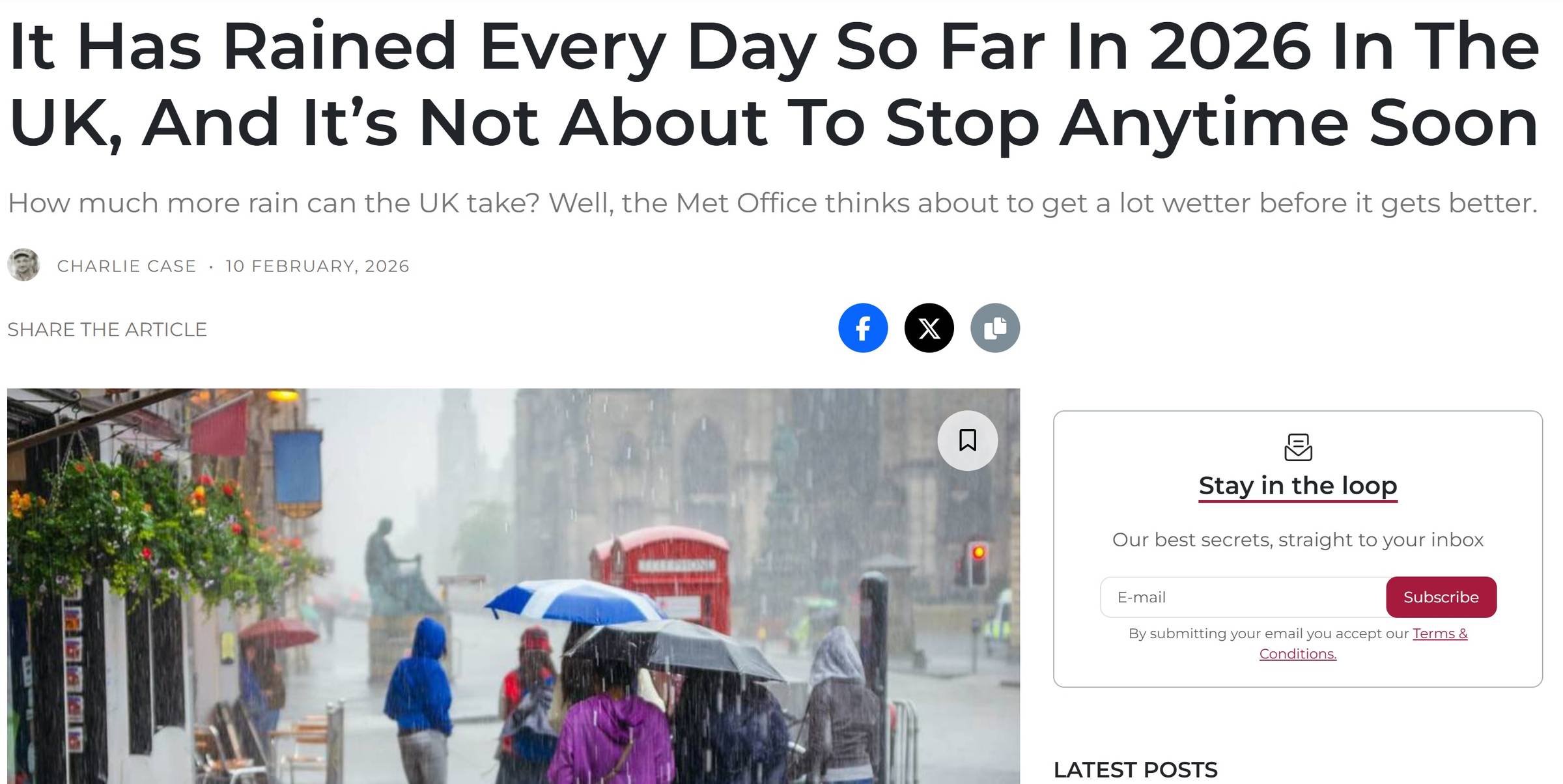 I could intro my way into this email by telling you it's currently snowing here in England after it has rained literally (and I don't use the word literally lightly) every single day since the beginning of the year, in what Secret London has aptly called rainfall of Biblical proportion.